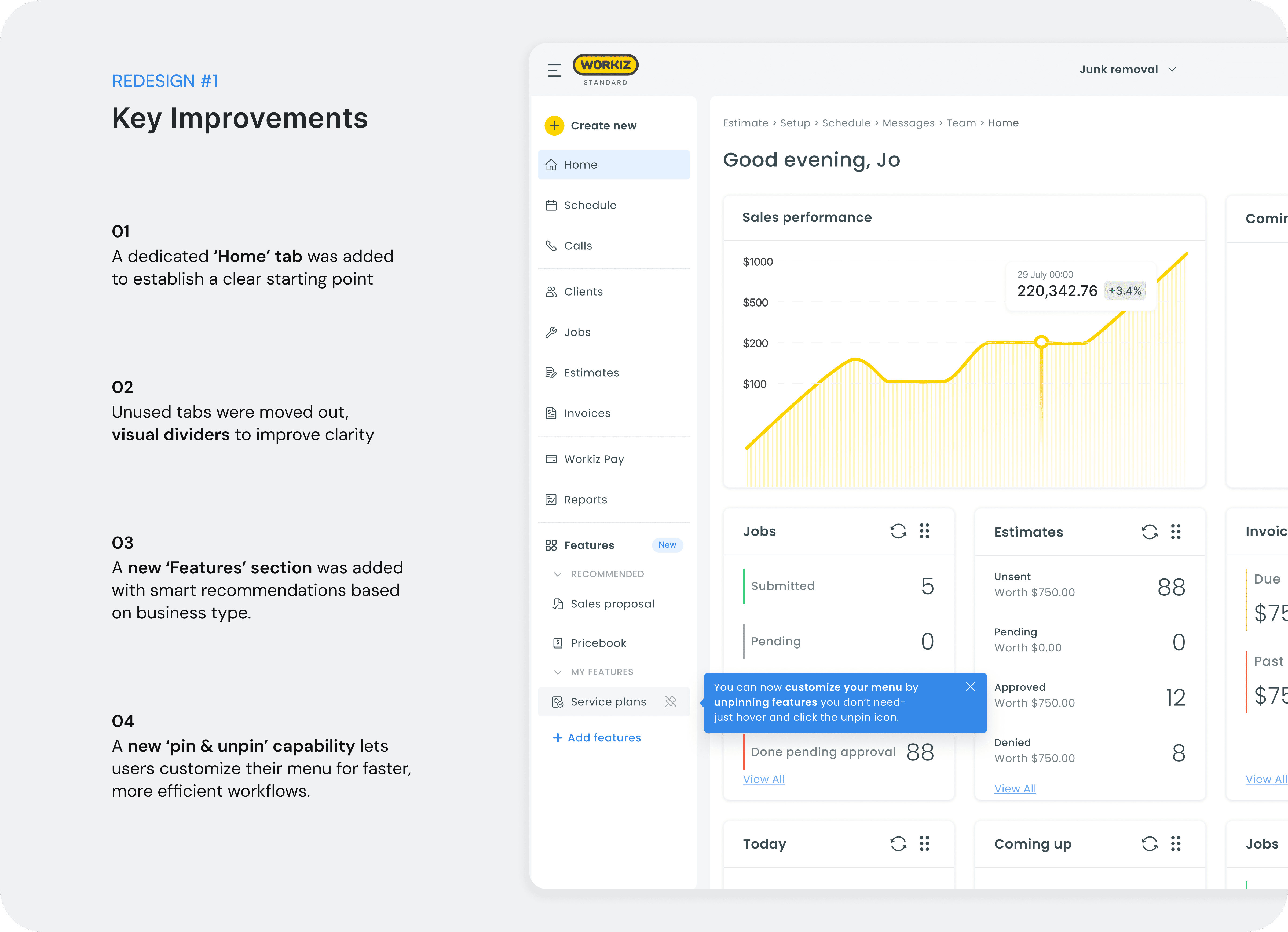 “When I log into Workiz, I want to quickly jump into my day-to-day tools, so I can save time and avoid digging through menus.”