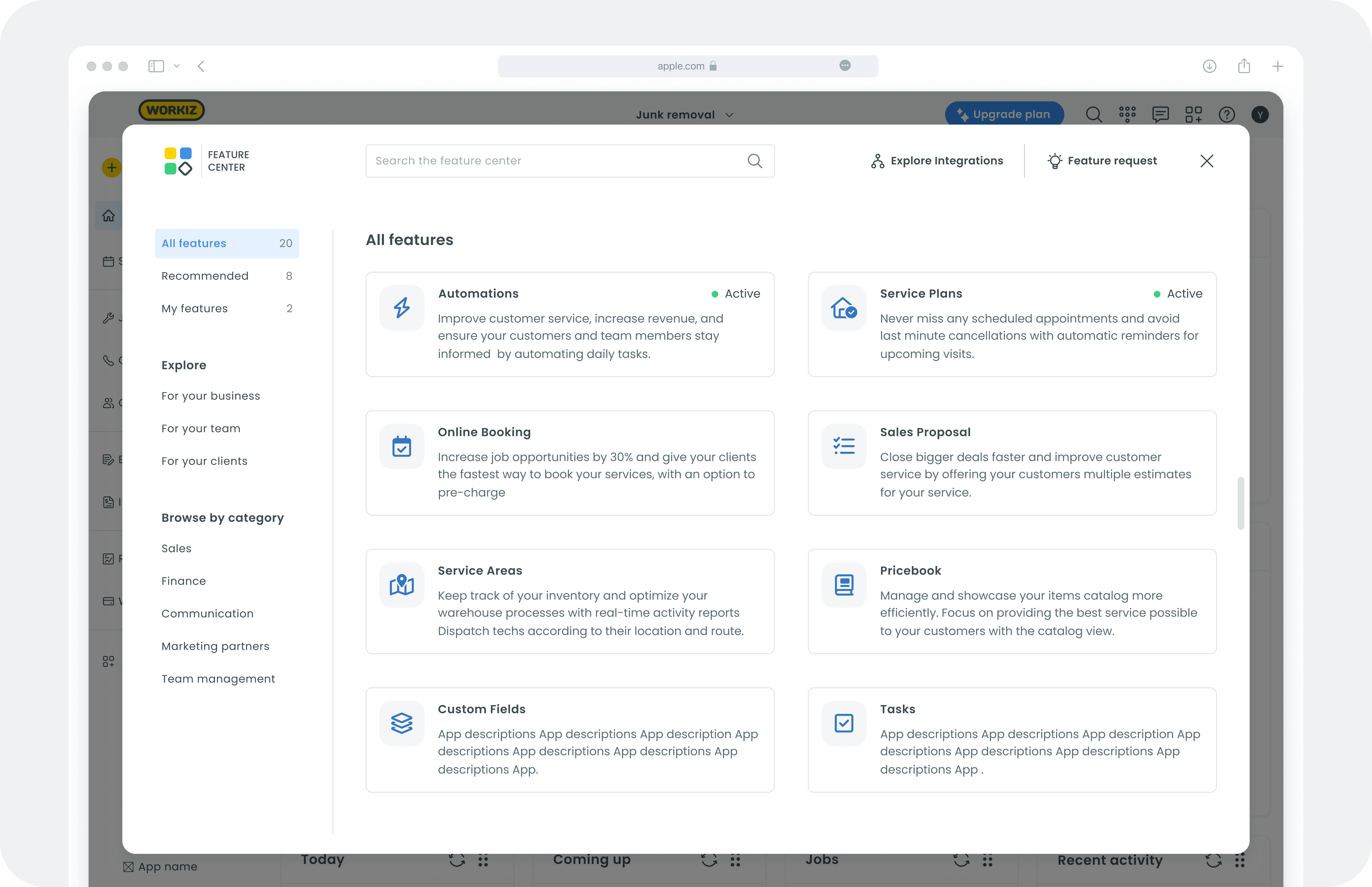 “When I’m setting up the system, I want to easily discover useful features, so I can customize Workiz to fit my business.”