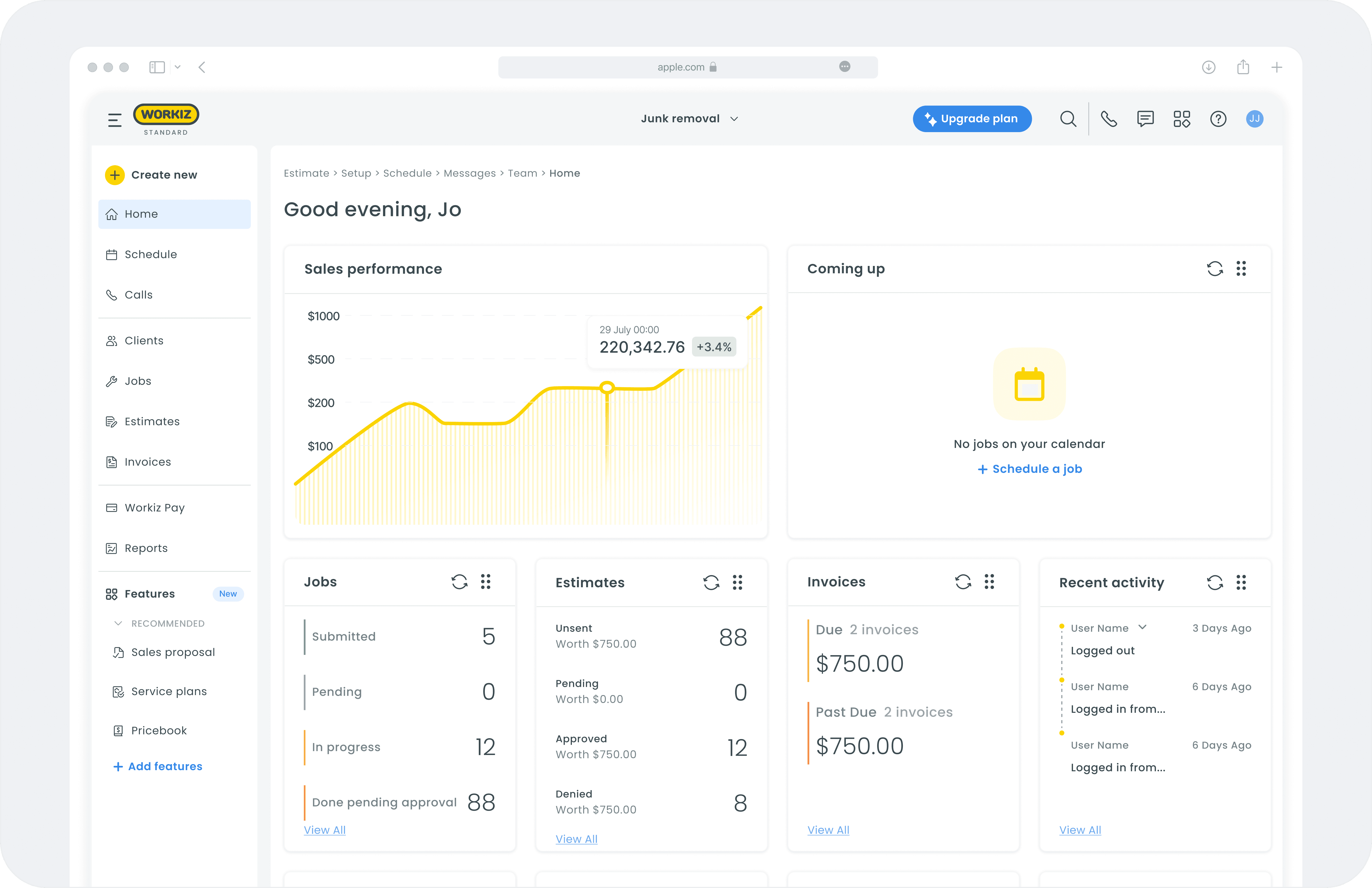 Workiz is an all-in-one platform for managing home service businesses. It streamlines teams scheduling, payments, and job management in the field and back office.
