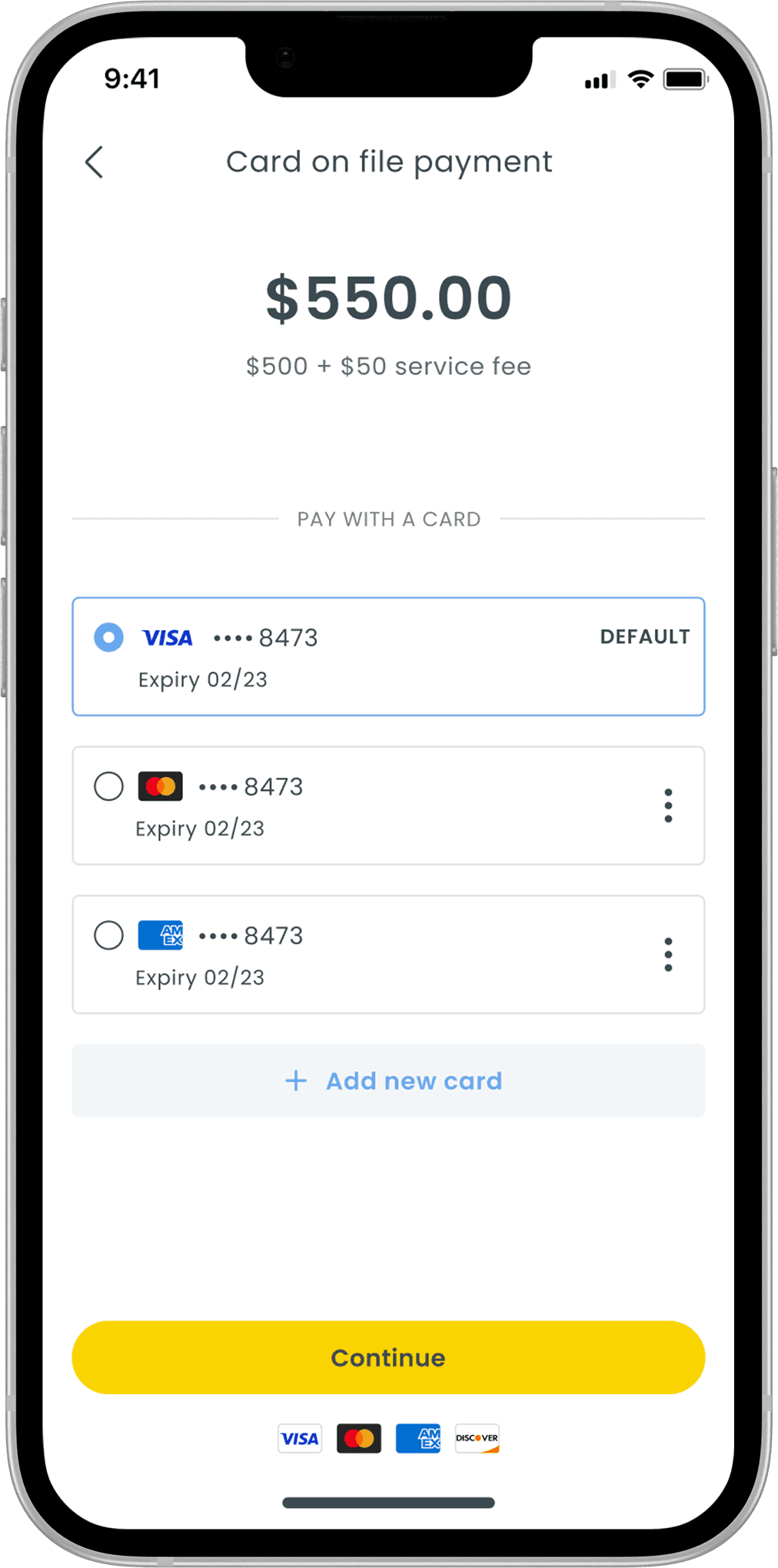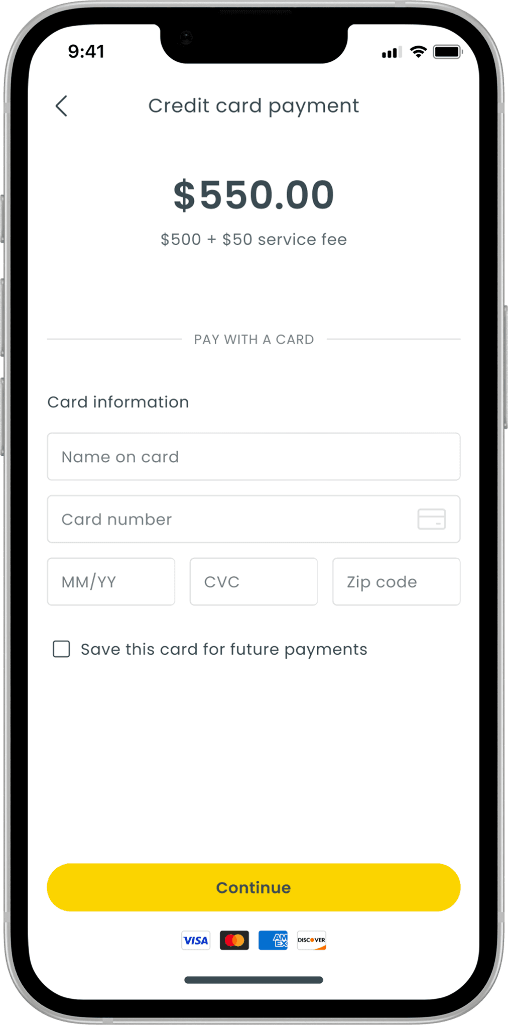 Here, clients first enter their credit card details or confirms the saved card on file, and only after that, the tipping screen appears. This sequence was designed to accommodate Stripe’s technical limitations while still maintaining a smooth and consistent user experience.